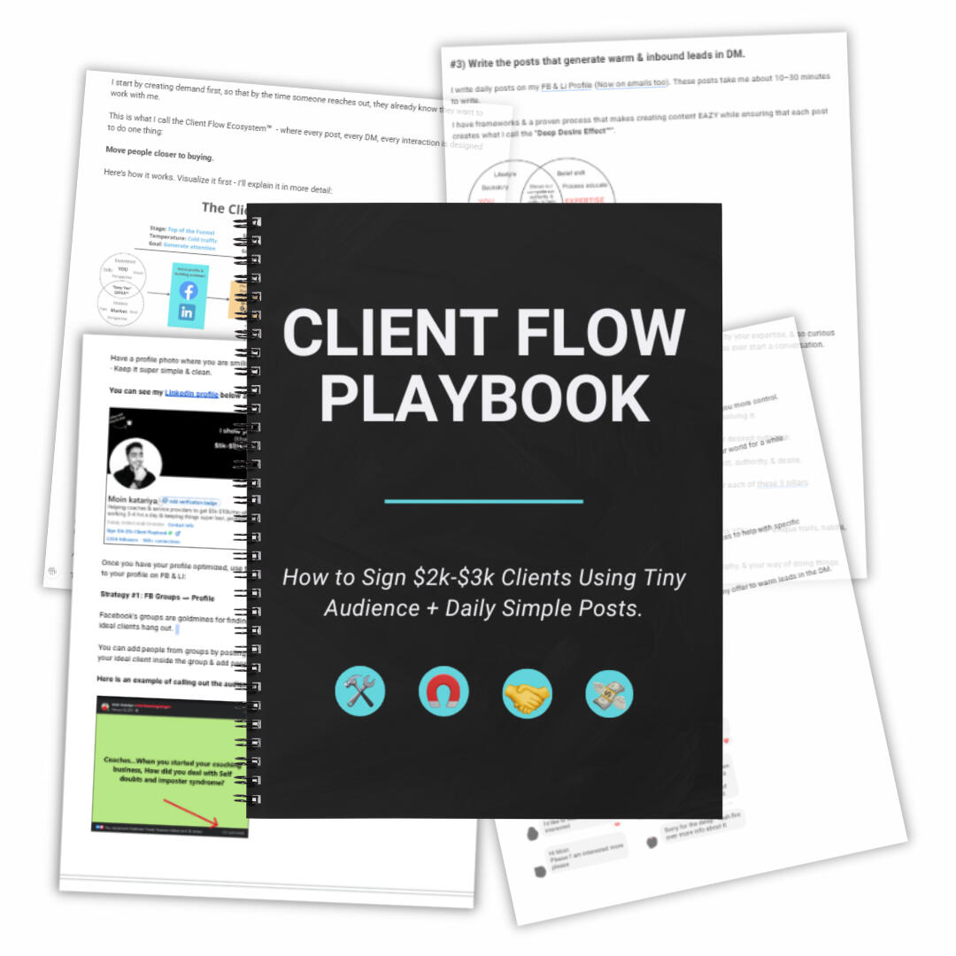 Most service based experts think they need complex ads, funnels, webinars or endless sales calls to sign clients.In this playbook, I'll show you a simple system to sign $2k-$3k clients using your every day posts & DM.Enter Your Best Email Below & I'll Send It Right Over
